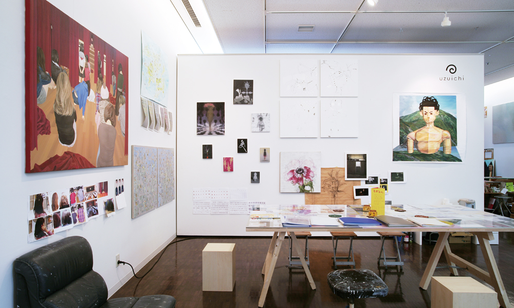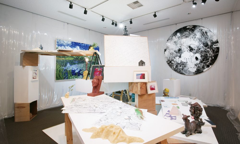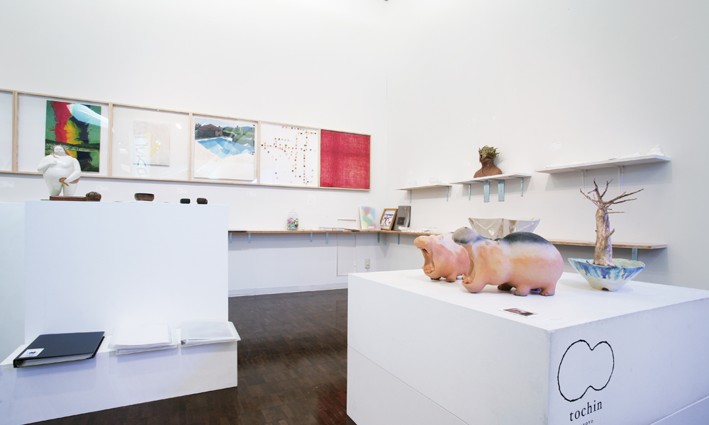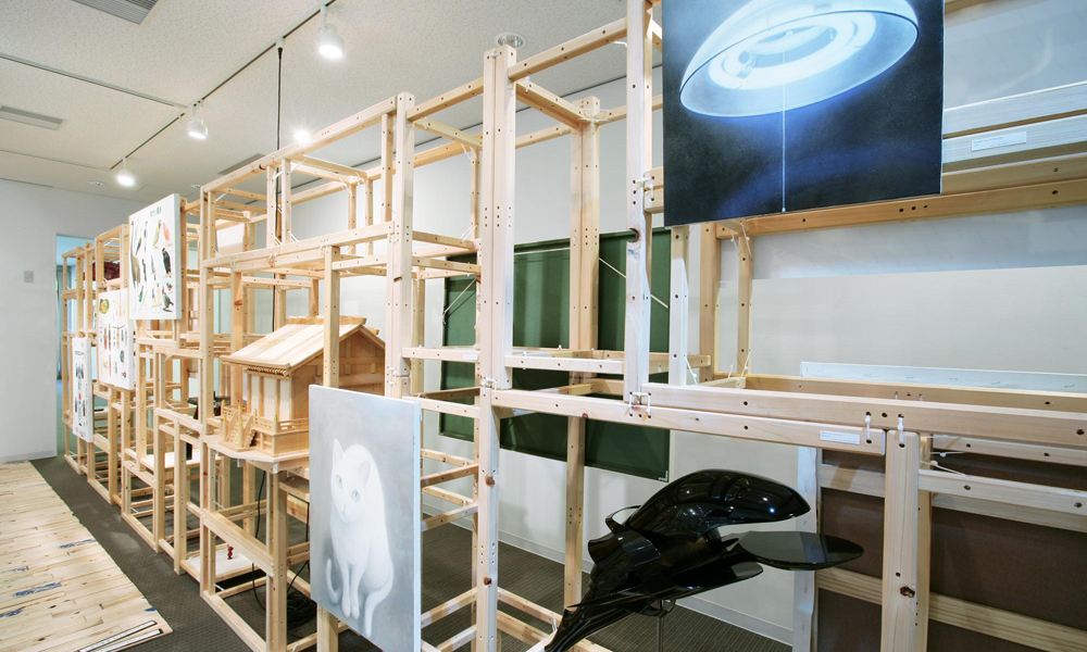 京都には共同スタジオ(アトリエ)とよばれる場所 が30 軒以上も点在していると言われている。共同 スタジオとは、複数人のアーティスト達がスペースを 共有し制作現場として利用している場所のことであ り、賃貸の相互負担としての経済的機能を持つと同 時にアーティスト達の交流の場、コミュニティーとし ても機能している。本展では、展示会場内に17 軒 の共同スタジオを再現し、その中に各スタジオに所 属するアーティストの作品を展示。出展作家は総勢 88 人に上り、出展作品数は100 点を超えた。