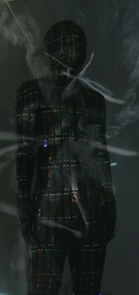 本展では、日常空間を飛び交う放射線を「霧箱」 という装置によって可視化し、それが人体を模した スーツにプロジェクションにて投影されると、光の 当たった部位がその部位の名称を発声するという 仕掛けにより、知覚不可能な感覚を視覚・聴覚で クローズアップする事で、新たな体感・実感の場を 創出させる事の可能性を探った。