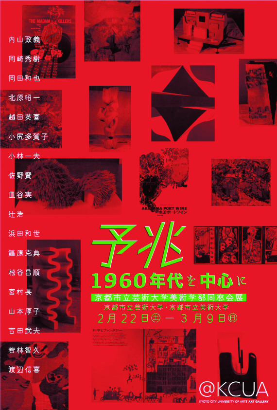本年3月に京都市立芸術大学ギャラリー @KCUA にて開催された、「戦ったあとの美術1950 年代を 中心に」の続編として、1960 年代に焦点を当てた本展では、本学芸術資料館に保存されている当時の制作展買い上げ作品を中心に展覧し、時代との 関係を探った。出品作品には表現における変革を予兆させる作品が多く、時代の色を感じさせた。