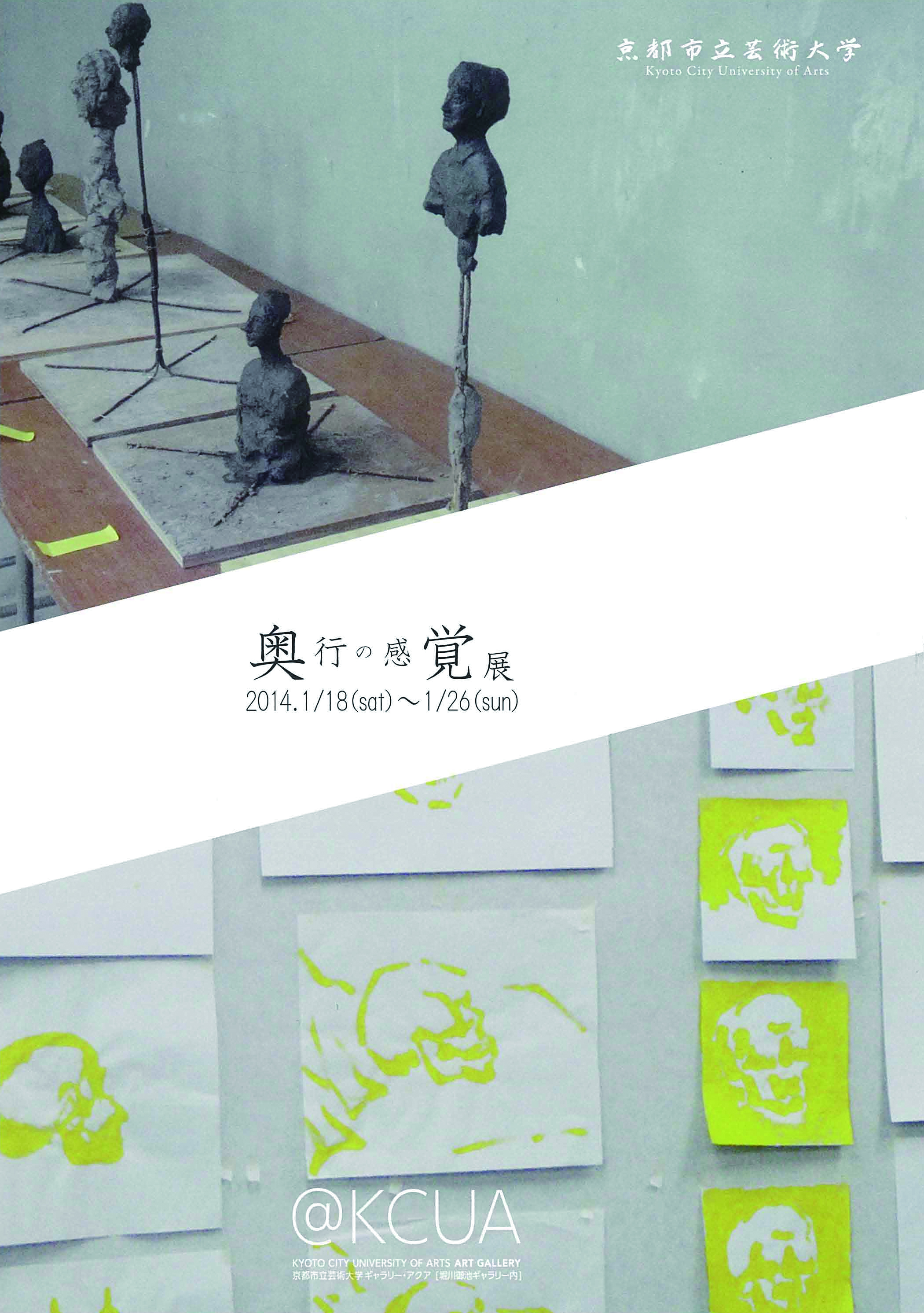 本展覧会は、京都市立芸術大学の各専門領域を 横断しながら研究を行う授業“テーマ演習”枠で 2012 年度より行われている「奥行の感覚」の成 果報告である。「奥行の感覚」は、古今東西のあら ゆる芸術表現を紐解くためのキーワードとしてあり、 “造形”を手掛かりに実制作者の視点から表現を読 み解き、新たな解釈を見つけ出すべく研究を行って いる。