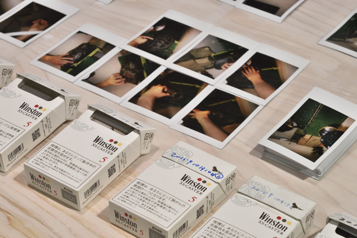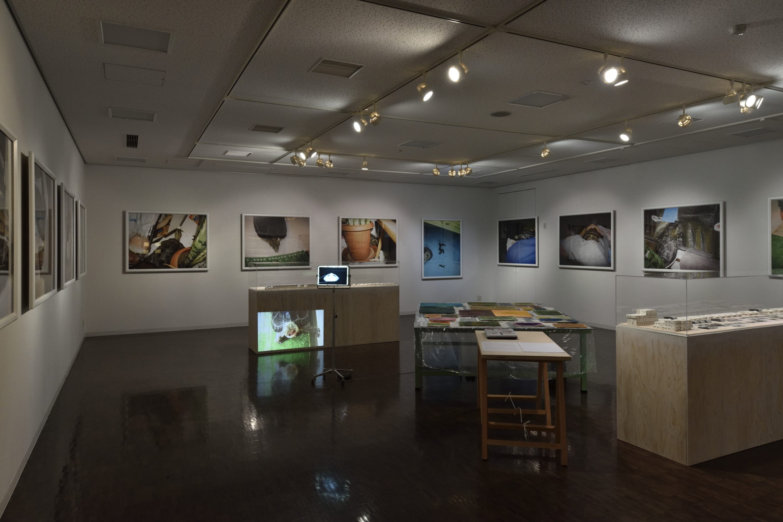 2014年、青森での個展のリサーチをしていた伊藤は、八百屋に並んでいたメロンに目が止まり、その「重量」を強烈に感じて惹きつけられるという体験をする。それは、大学院進学のために京都に来てからずっと浮遊しているかのような状態にあった伊藤の身体に「着地点」が与えられた瞬間であった。そして青森県立美術館・八角堂にて、このことに着想を得た作品を発表した。やがて展覧会の搬出時、そこに現れた一匹のカメに縁を感じた彼女は、京都の自宅へと連れ帰る。以後、伊藤とカメの「しじみ」は非常に身近な存在として同居生活を続けている。本展では、具体的な意思疎通の手段がない中で、曖昧なままに蓄積されていく「しじみ」の日常に関する記録資料や、彼女との「対話距離」から着想した作品を用いたインスタレーションが展開された。