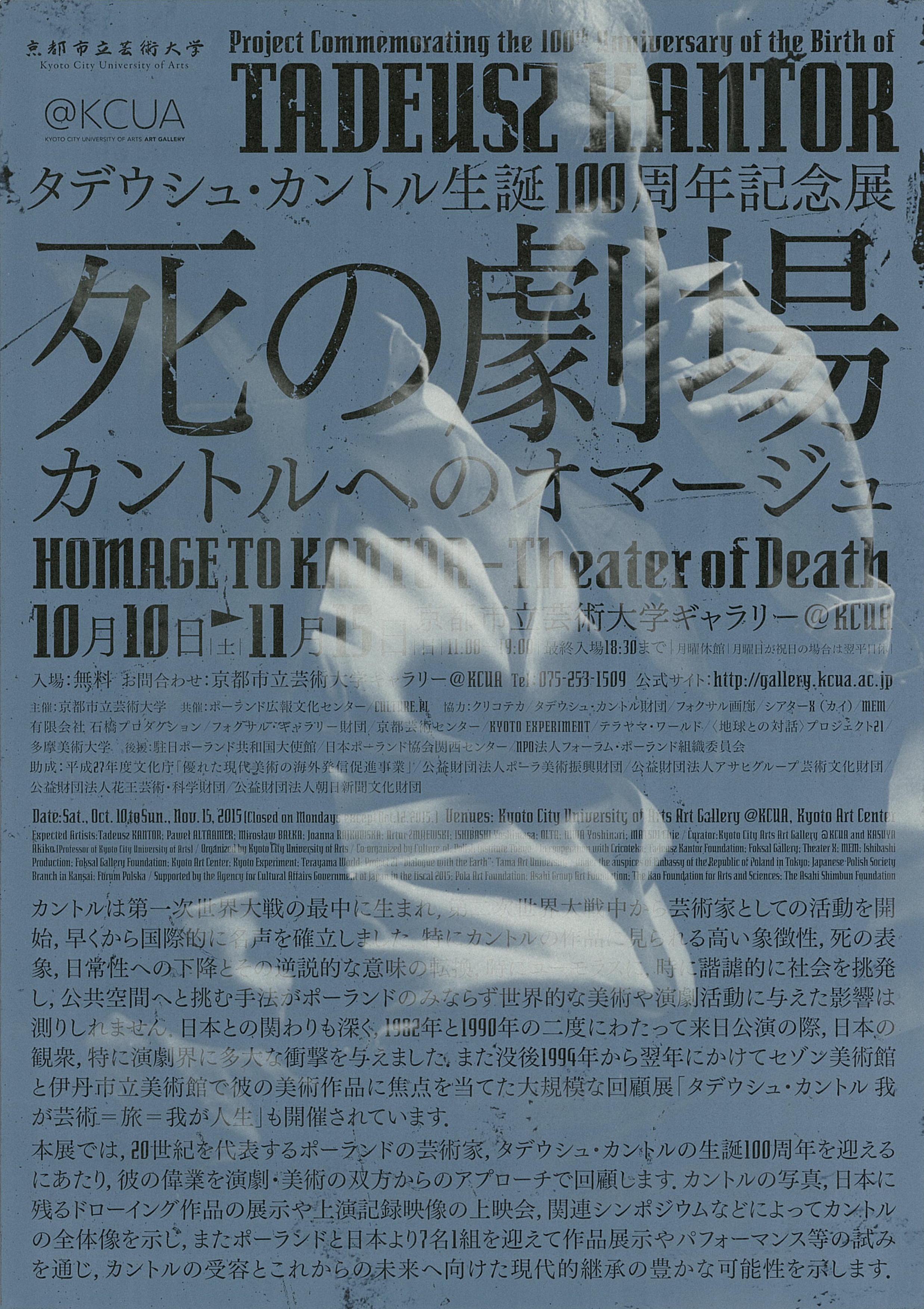 主催:京都市立芸術大学/共催:ポーランド広報文化センター、Culture.pl、日本スラヴ学研究会/協力:クリコテカ、タデウシュ・カントル財団/後援:ポーランド共和国大使館、日本ポーランド協会関西センター、NPO法人フォーラム・ポーランド組織委員会