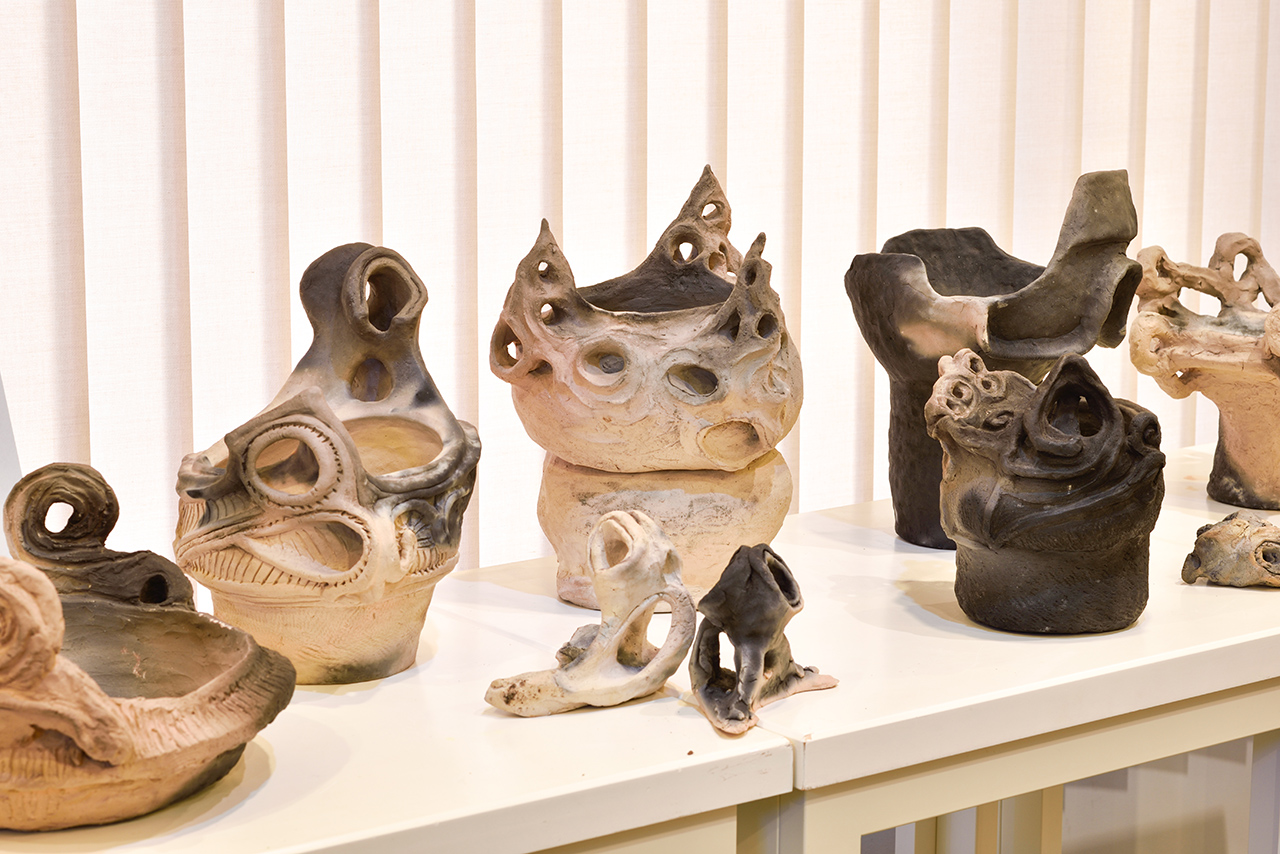京都市立芸術大学の各専門領域を横断しながら授業を行う「テーマ演習」の一つとして2012年度より行われている「奥行きの感覚」では、彫刻専攻、陶磁器専攻、日本画専攻、芸術学専攻、宇宙物理学研究室の各教員と様々な専攻の学生が参加して、「奥行きの感覚」を古今東西のあらゆる芸術表現を紐解くためのキーワードとして研究を進めている。図像学や社会文化史、精神史等を基盤とする作品評価とは異なり、「造形」に由来する奥行きを手掛かりに実制作者の視点から表現を読み解き、新たな解釈やさらなる展開の可能性を見つけ出そうとする試みである。今回の展示では、2014年度から今年度に行った研究の成果を、その過程で生み出された考察を交えて紹介した。