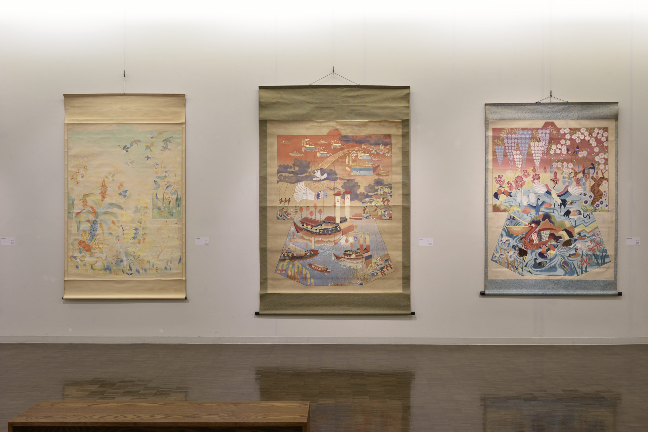 本展で展示した卒業作品は、京都における二大染織産業である友禅染と西陣織による制作のための図案である。当時、日清戦争後の日本の軽工業の発展を受けて、京都でも染物や織物の需要に応える必要が生まれてきた。出展作品から、京都染織産業界の華々しい発展と歩みを共にした衣装図案の世界から窺い知ることができる。