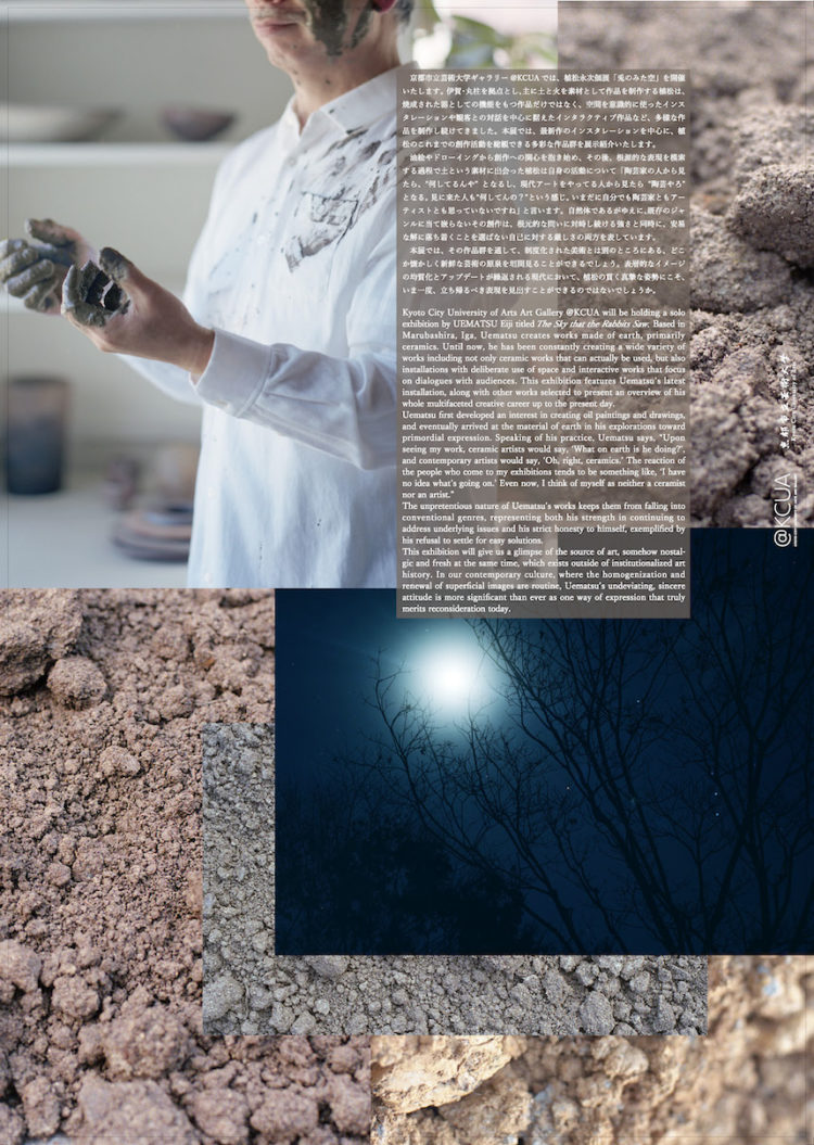 伊賀・丸柱を拠点とし、土と火を素材として作品を制作する植松は、焼成された器としての機能をもつ作品だけではなく、空間を意識的に使ったインスタレーションや観客との対話を中心に据えたインタラクティブ作品など、多様な作品を制作し続けてきた。本展では、最新作のインスタレーションを中心に、植松のこれまでの創作活動を総観できる多彩な作品群を紹介した。