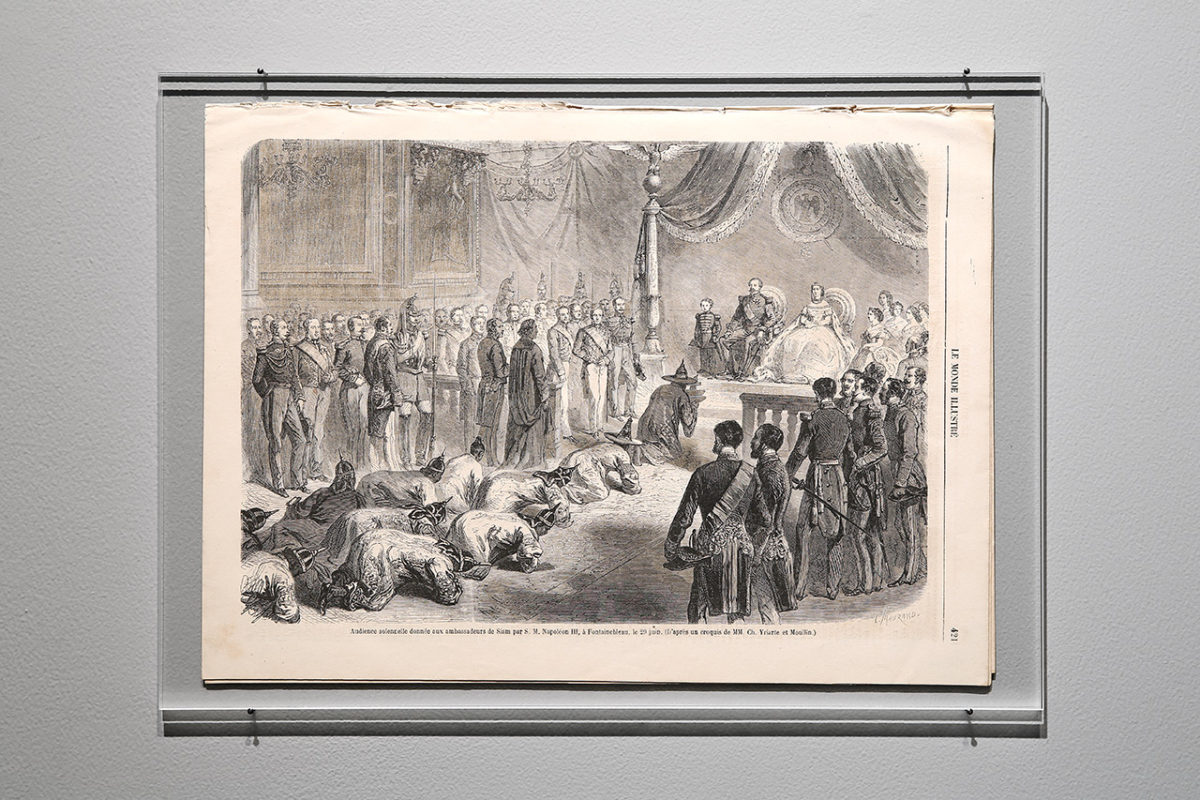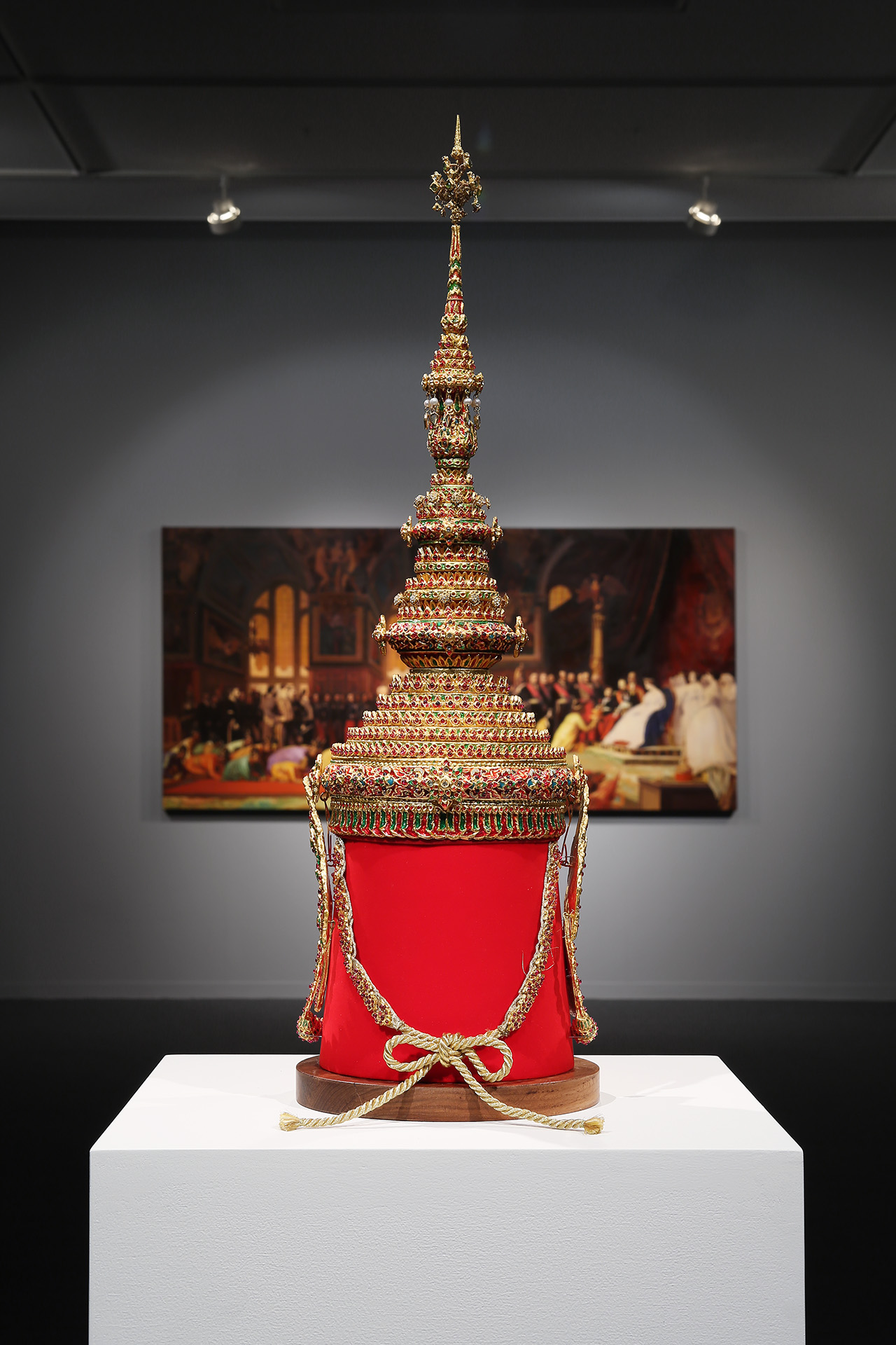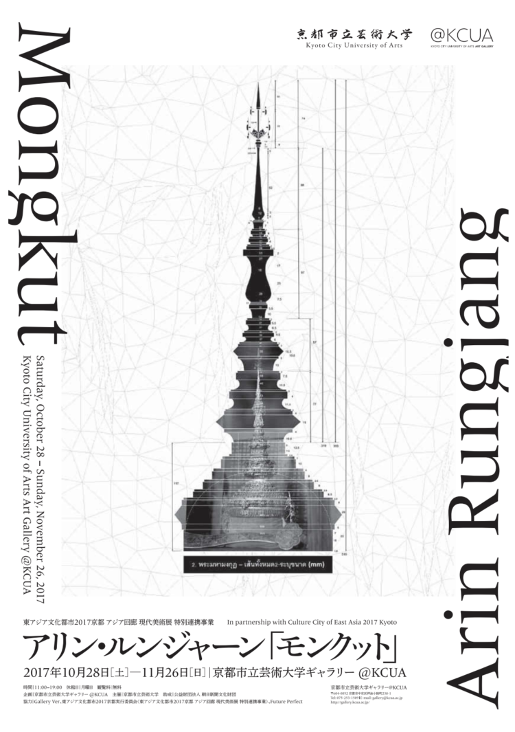 タイの歴史を出発点とする作品で知られる現代美術家、アリン・ルンジャーンの日本初の個展「 モンクット」を開催した。2015年フランスで発表された《モンクット》は、「モンクット王 」として知られるラーマ4世が自らが受け継いだ王冠を二度複製し、二つ目のレプリカを1861年にフランスに渡った大使を通してナポレオン3世に贈ったという、歴史上の知られざる出来事が出発点となっている(「モンクット」はタイ語で「王冠」を意味する)。1782年に作られたタイ王国の正式な王冠の1861年のレプリカを元に更に複製した、ラーマ4世の子孫にあたる職人の手による新しいレプリカを、同職人も登場する映像などと併せた複合的なインスタレーション作品である。今回の個展では、ドクメンタ14(2017)への招聘のきっかけにもなった本作に新たな要素を加え、初めてフランス国外で展示した。