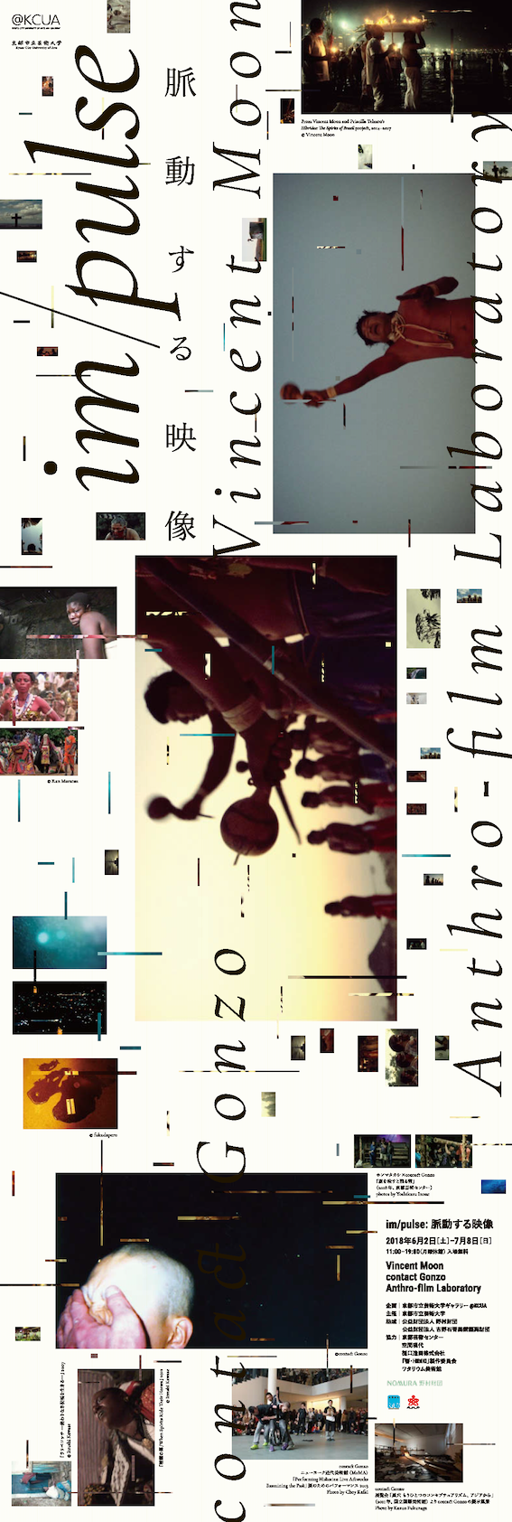 そこで本企画では、映像人類学的観点から見ても優れたアプローチを取る映画監督、ヴィンセント・ムーンならびに即興的な身体の接触から始まるパフォーマンス・映像・写真など発表形態を固定しない活動で国内外から高い評価を得るcontact Gonzo、そして映像人類学者の川瀬慈(国立民族学博物館准教授)率いる研究会「Anthro-film Laboratory」による公開型のセミナーや実験を行った。