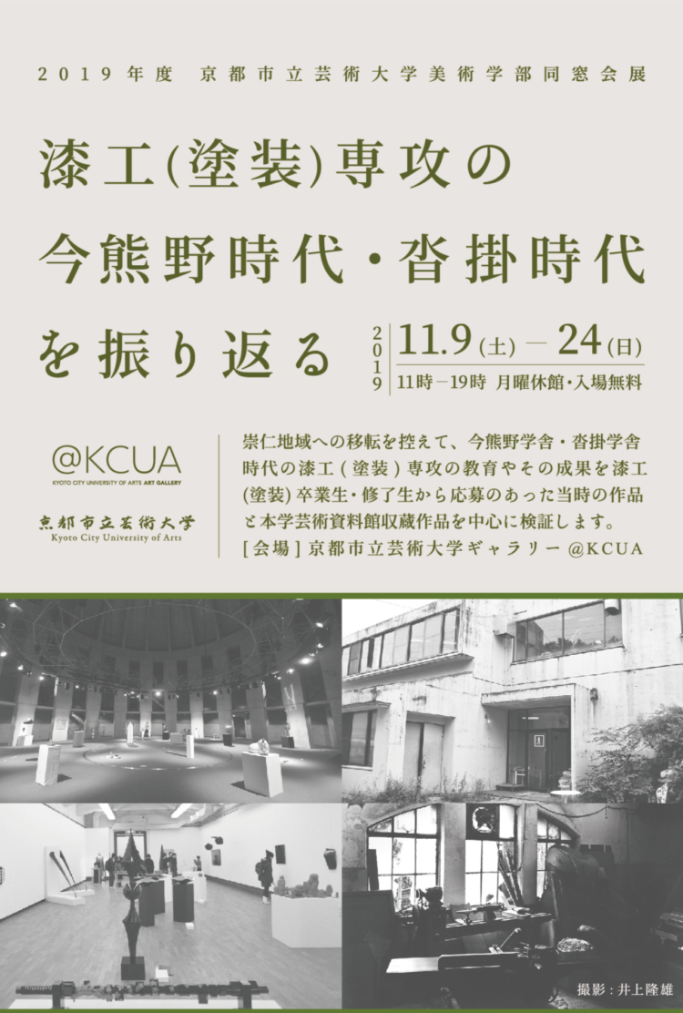 崇仁地域への大学移転を控えて、今熊野学舎・沓掛学舎時代の漆工(塗装)専攻の教育やその成果を漆工(塗装)卒業生・修了生から応募のあった当時の作品と本学芸術資料館収蔵作品を中心に検証した。