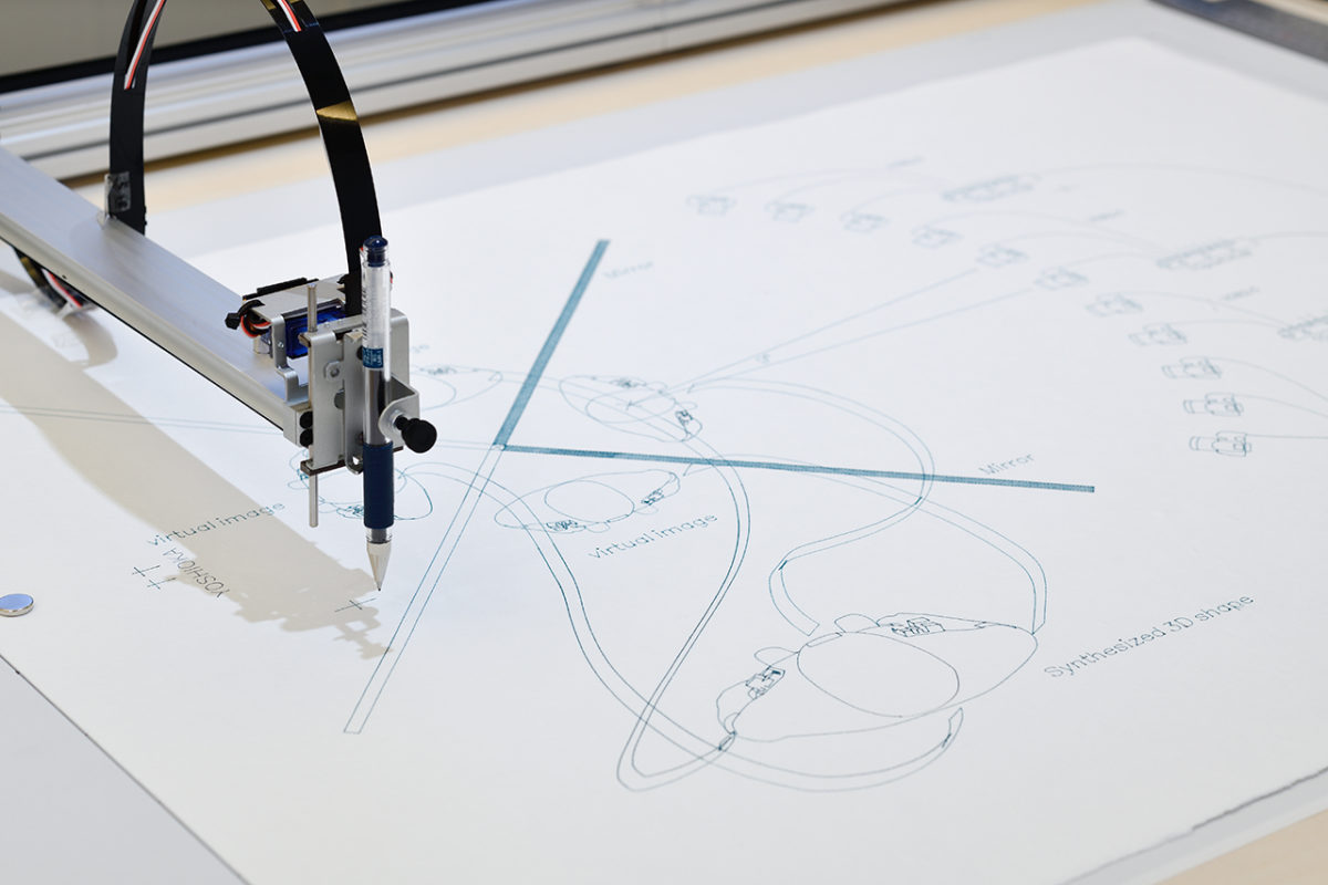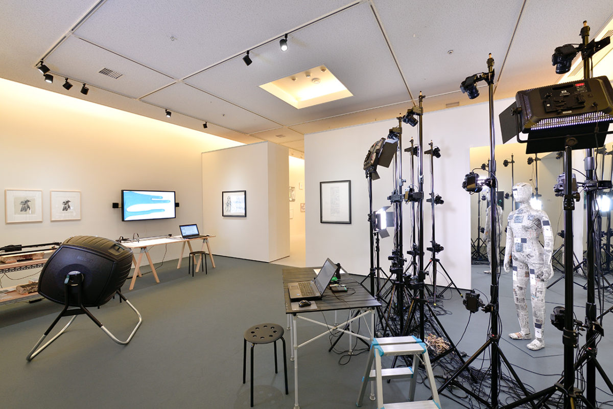 フォトグラメトリー技術を使用して得られるイメージを基にした版画作品を手がける本学准教授・吉岡俊直(専門:版画)による作品展。フォトグラメトリーとは、被写体をさまざまな方向から撮影したデジタル写真を解析・統合して立体的な3Dモデルを作成する方法で、吉岡は、この手法を使って得られる対象の表面の形だけが抜き出された奇妙なイメージから、日頃見ている世界の認識を逆照射することを試みている。会場内には版画専攻の卒業生・在学生らの版画作品とともに、作品の制作プロセスを開示するメタ的な構造が並置され、版画作品の構造を観客が理解し逆算することで、新たな作品理解へと繋げることが企図された。