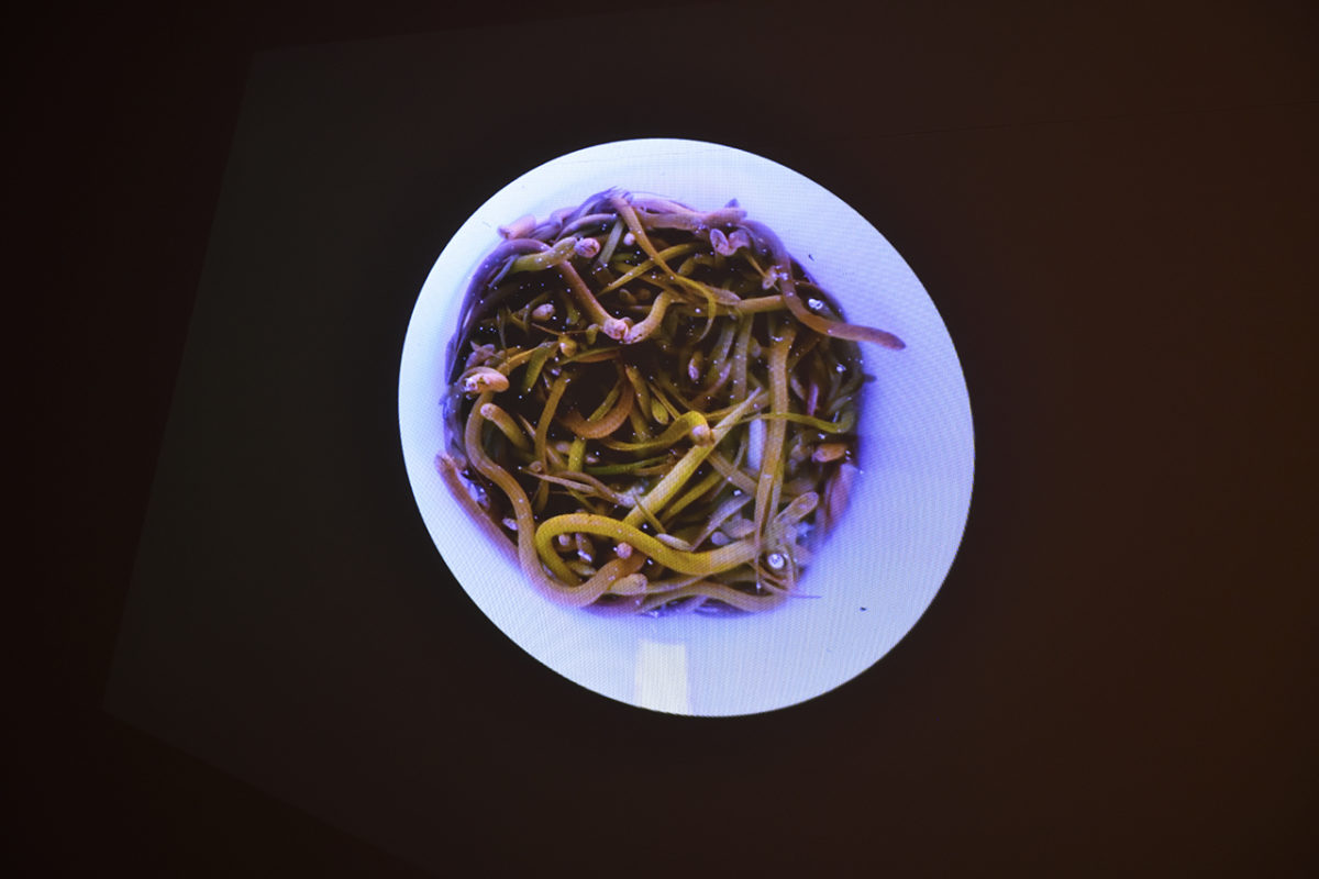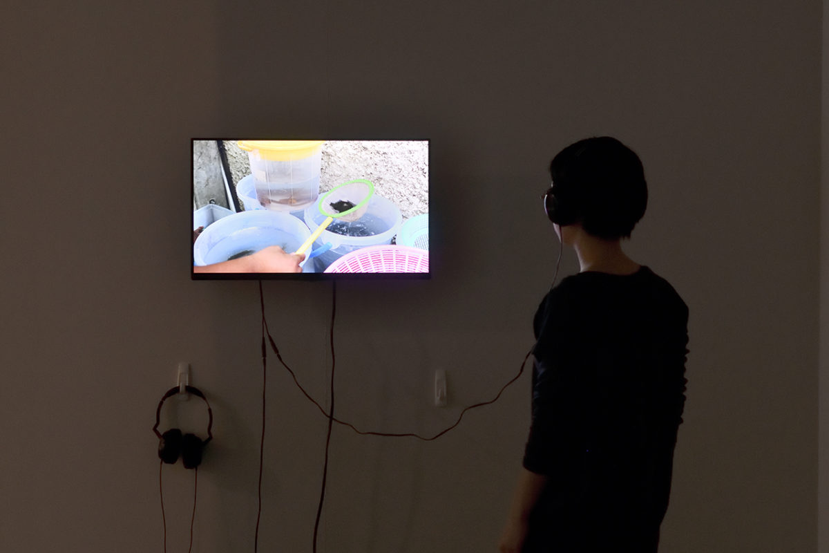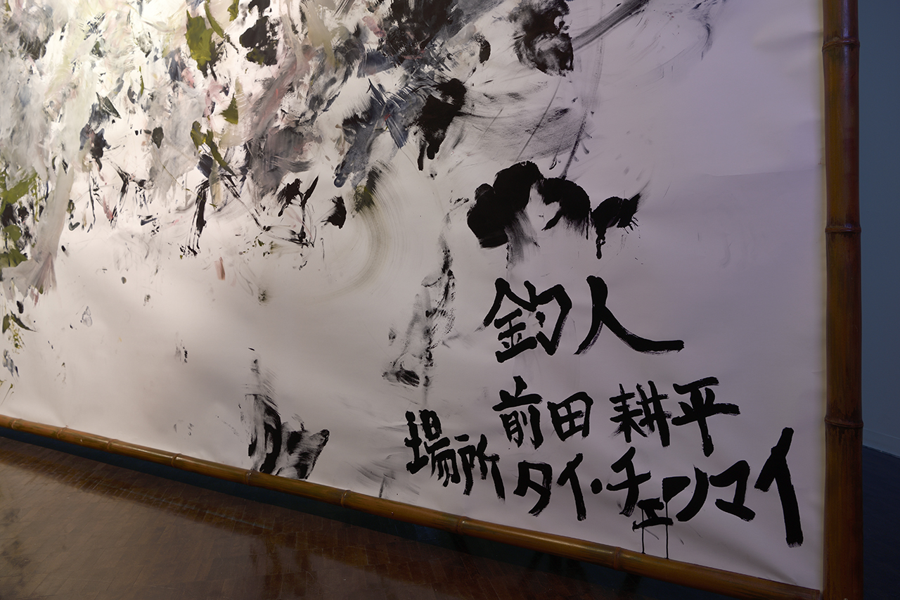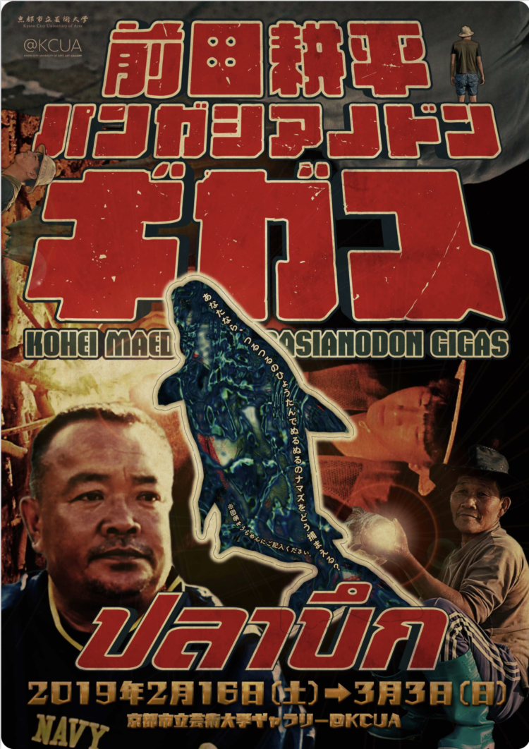 前田耕平は、人や自然、物事との関係や距離に興味を向け、自らの体験を手がかりに、これまで映像やパフォーマンスなど様々なアプローチによる探求の旅を続けている。2018年にはアーティスト・イン・レジデンスのプログラムでタイのチェンマイに滞在し、メコンオオナマズが生息するダムを舞台にリサーチを行った。本展では、その体験をもとに作られた新作《パンガシアノドン ギガス》が展示された。