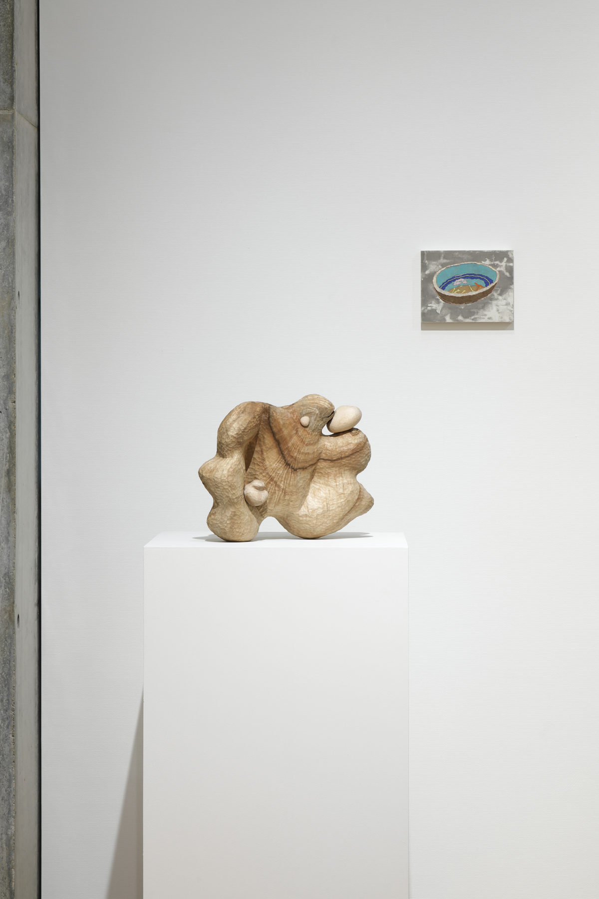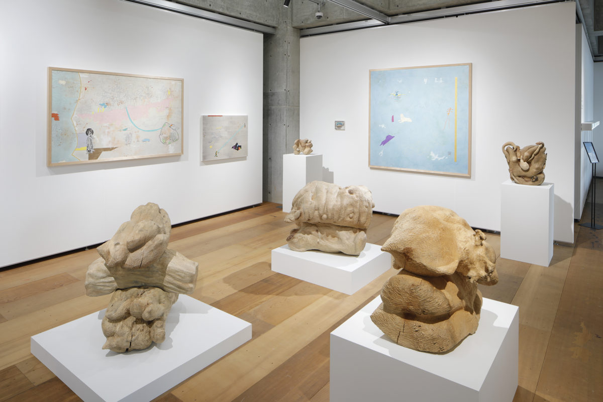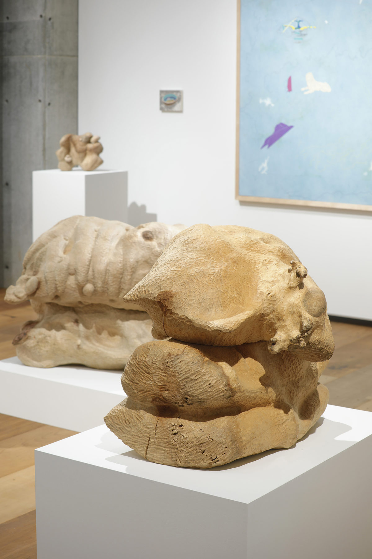 矢野洋輔の制作は、素材となる木との出会い、それらが持つ個性との対話から始まります。力業でねじ伏せて造形を行うのではなく、その木の種が持つ特徴、一つとして同じものがない節や枝などの特徴などに寄り添いながら、唯一無二のかたちを作り上げていきます。また、スケッチやドローイングには、日々の観察で出会ったものをさまざまな視点から捉えたかたちや、制作における思索など、ものをつくるという行為とは何かをシンプルに突き詰めるさまが表れています。そうして矢野が作り出すやさしくも力強い木彫は、芸術表現という域を超えて、私たちに自然と人間との共生のあり方、人が生きるために不可欠な営みについて思いを巡らせることを促します。