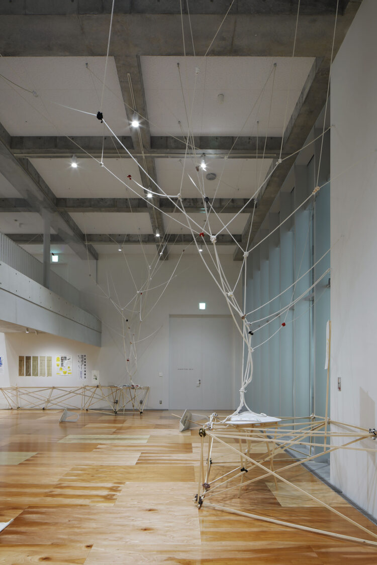新キャンパスの敷地内には、かつて運河として開削された人工河川である高瀬川が流れています*。また、沿岸に大学と周辺地域との交流広場「崇仁テラス」が整備されるなど、高瀬川は大学と地域とをつなぐシンボルの一つとなりつつあります。そこで本展では、高瀬川に着想を得たイメージをもとに会場を構成し、内と外の境界をまたいでひろがる「テラス」という理念の体現を試みます。それは、新キャンパス、そしてそこに込められた建築家たちの想いへの、@KCUAからの一つの応答でもあります。