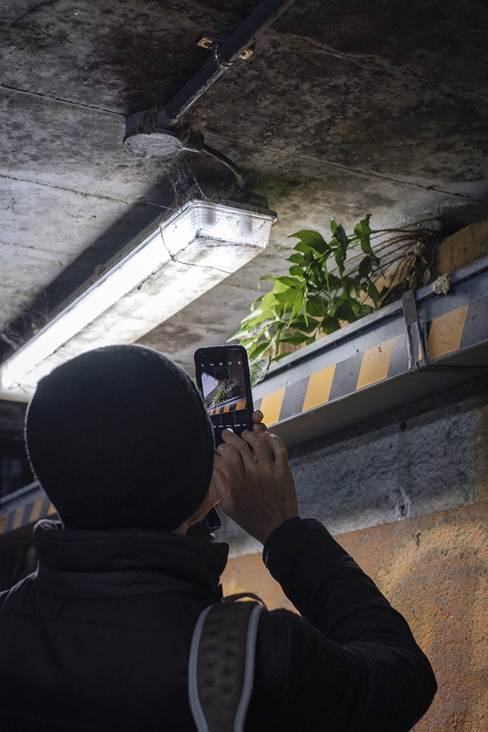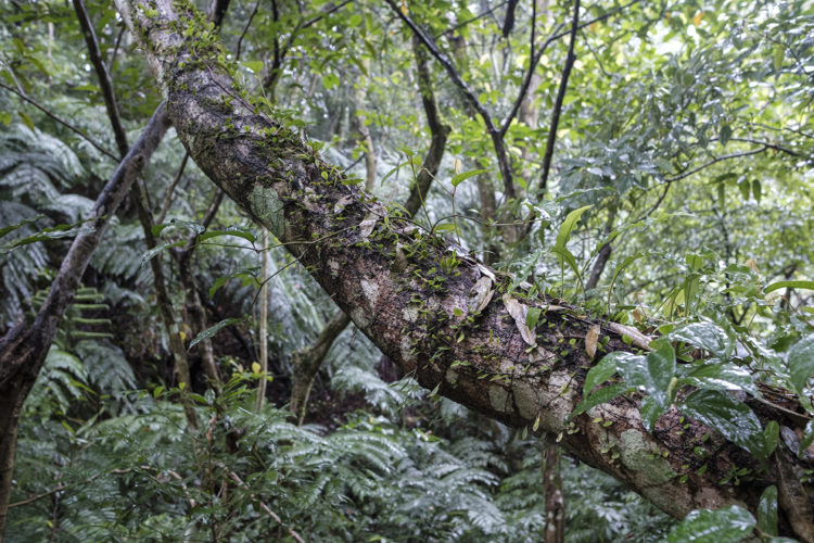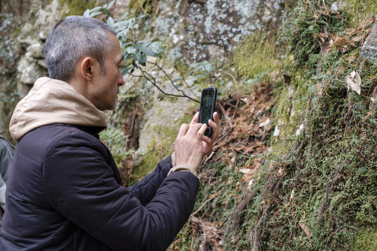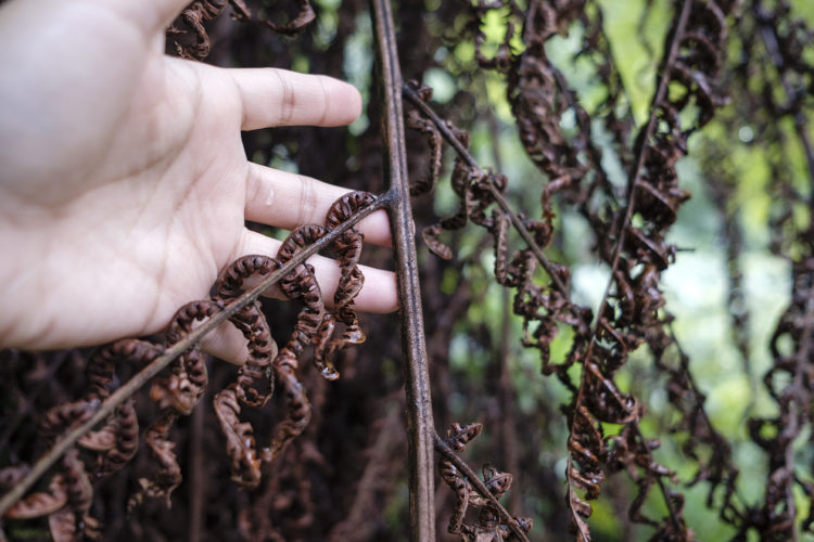 2018年の11 月、ジェン・ボーの案内のもと、《Pteridophilia》*のシリーズの撮影場所である台北郊外の森を訪れた。年間を通じて湿度と温度の高い台湾の環境のもと、多くのシダ植物が伸び伸びと生い茂っている。この日は朝から小雨が降っていた。静かなこの森の中では、傘に落ちる雨音がやたらに大きく感じられる。撮影に使ったシダが新しい葉を伸ばしているのを一つ一つ確認しては安堵しているジェンの背中を追いながら、森の奥へと進む。