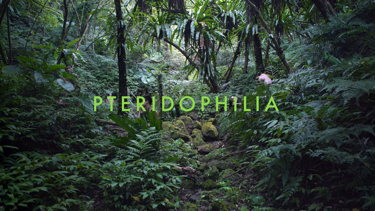 2016 年の台北でのアーティスト・イン・レジデンスでのリサーチを契機として始まった映像作品のシリーズ。 “ pterido- ”は「シダ」を意味する接頭辞、 “ -philia ”は「あるものに対する愛情又は嗜好性」を意味する接尾辞で、いずれもギリシア語由来。台湾においてシダは、原住民に古くから大切にされるなど歴史的にも重要な植物である。台湾が日本の植民地であった時代に移住してきた日本人の画家たちが、台湾の美しい花々に魅せられたこと、とりわけ第2 次世界大戦の終戦間際に日本軍が、また終戦後には中国本土からやってきた国民党が、食用シダを救荒植物として用いたことに着想を得たジェンは、人間と植物との共存関係について考察する《Pteridophilia》の制作に着手した。権力、統制と服従などが政治、性愛、そして生態学においてどのように現れるかを探ってきたジェンは、胞子が発芽して形成される前葉体で受精することによって増えるシダ植物を「クィア」な植物と定義し、これらと「クィア」な人々との親密な関係性を描くことで「エコ・クィア」の可能性を探求している。