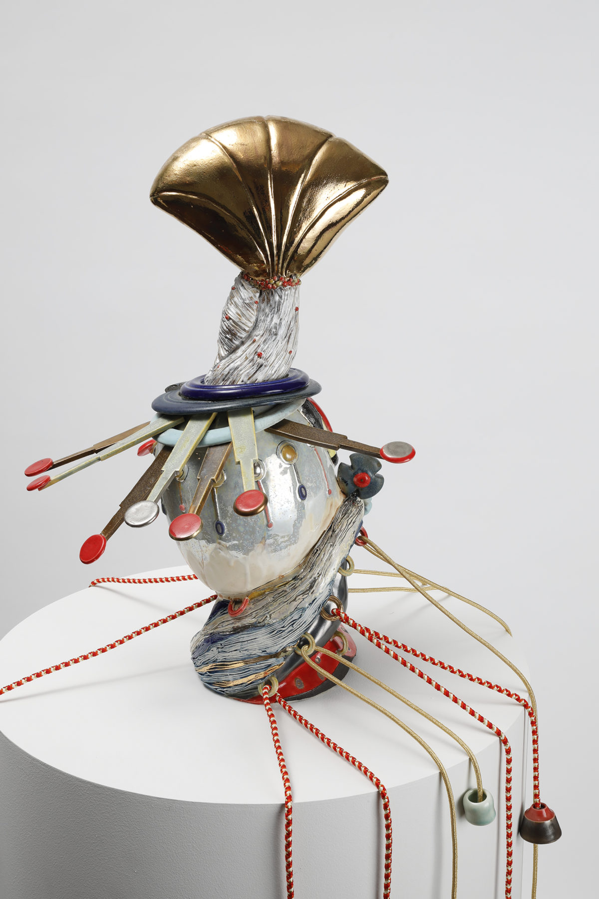 自身にとって制作をすることが、その制作過程を含めて祈るという行為に近いものがある。焼成することで、自らの手で生み出した作品は未知数に変化し、窯から出すまで予想がつかない。土という素材と対峙し、コントロールし、時には現象に任せてみる。そうした工程全てが詰まって私の「偶像」は生まれる。 出品作の《祈祷縄》は自らの縋れる拠り所としての役割を果たす。