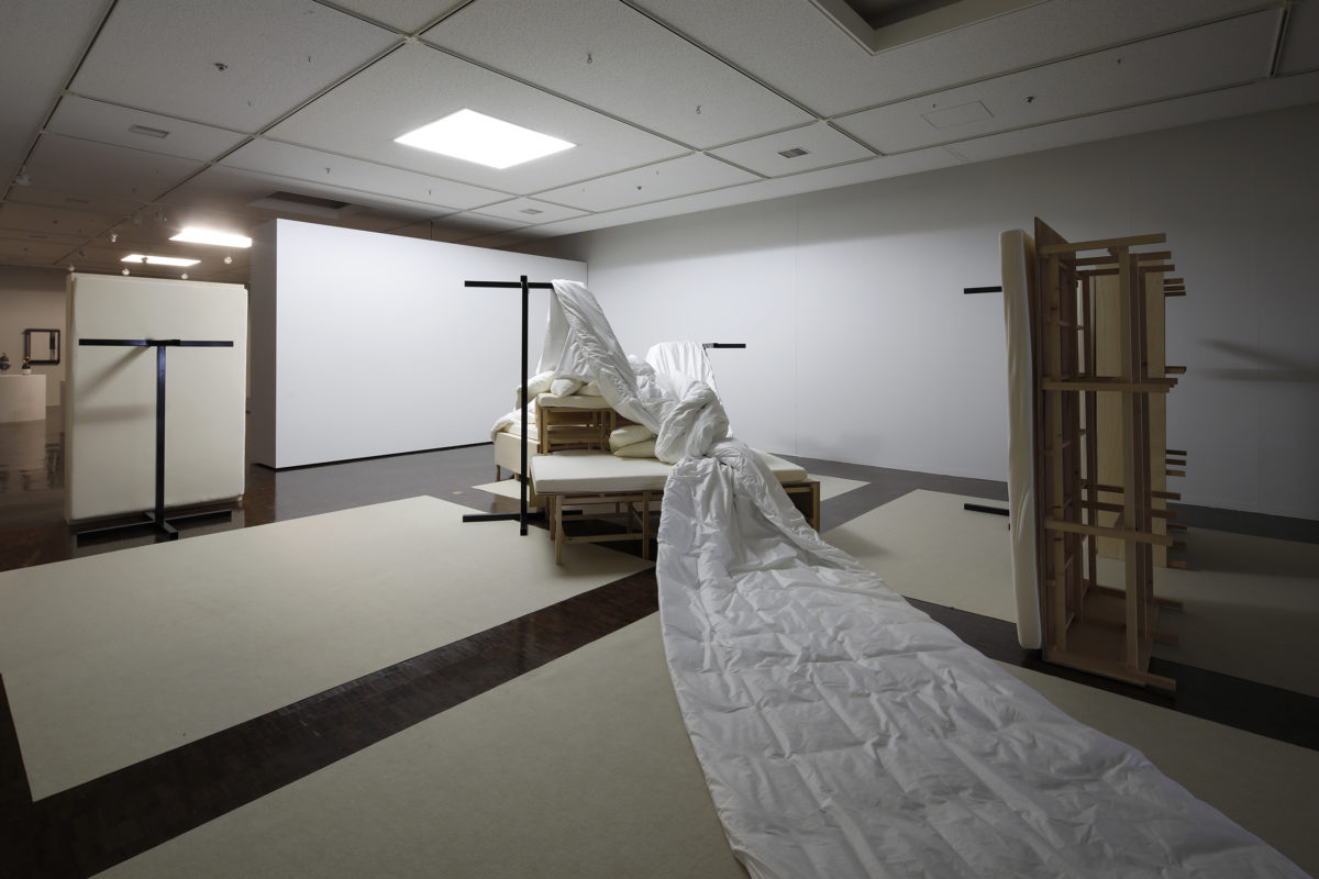 宮木:コロナウイルスに初期の予定を邪魔されてしまったという気持ちはありますが、ネガティブには捉えていません。むしろ作品と世の中の状況との間につながりが生まれることになったと思っています。私は物心がついてからの入院の経験の記憶はないのですが、展示しているベッドと病床のイメージが結びつくことで、誰とも面会できずに病室で数週間を過ごさなければならない状態を想像し、堪え難いであろう恐ろしさを覚えました。そもそもパフォーマンスには偶然性がつきもので、それは重要な要素の一つだと思っています。その場やその時に偶発的に発生したことをリアルタイムで素材の一つへ置き換えて、作品を展開させていく感覚でもあります。近いうちに、計画どおりの形で、パフォーマンスを実行したいと思っています。私以外の人を作品に加える初めての試みです。そこで浮かび上がった何かが次の展開へ繋がっていくかもしれません。