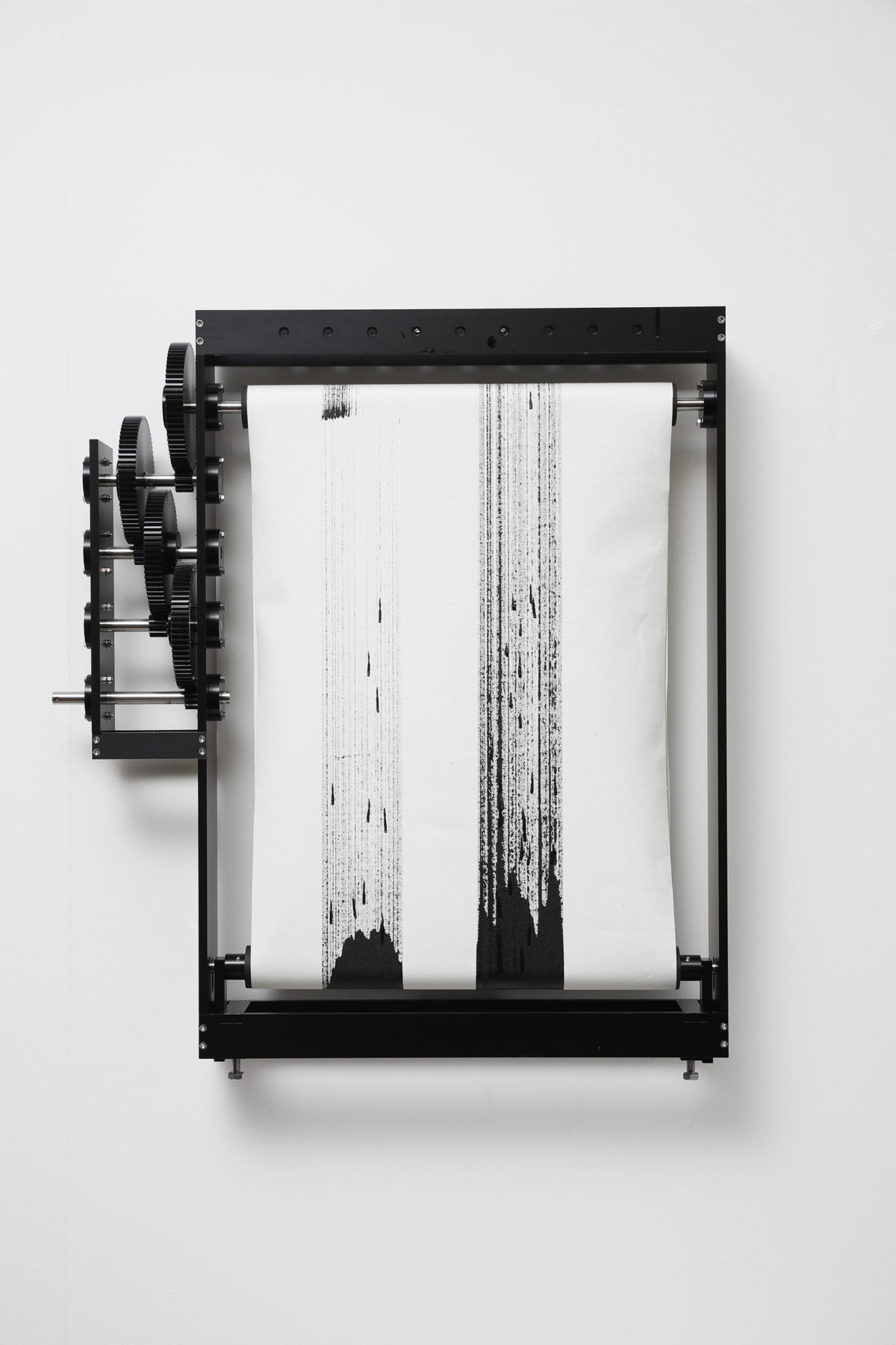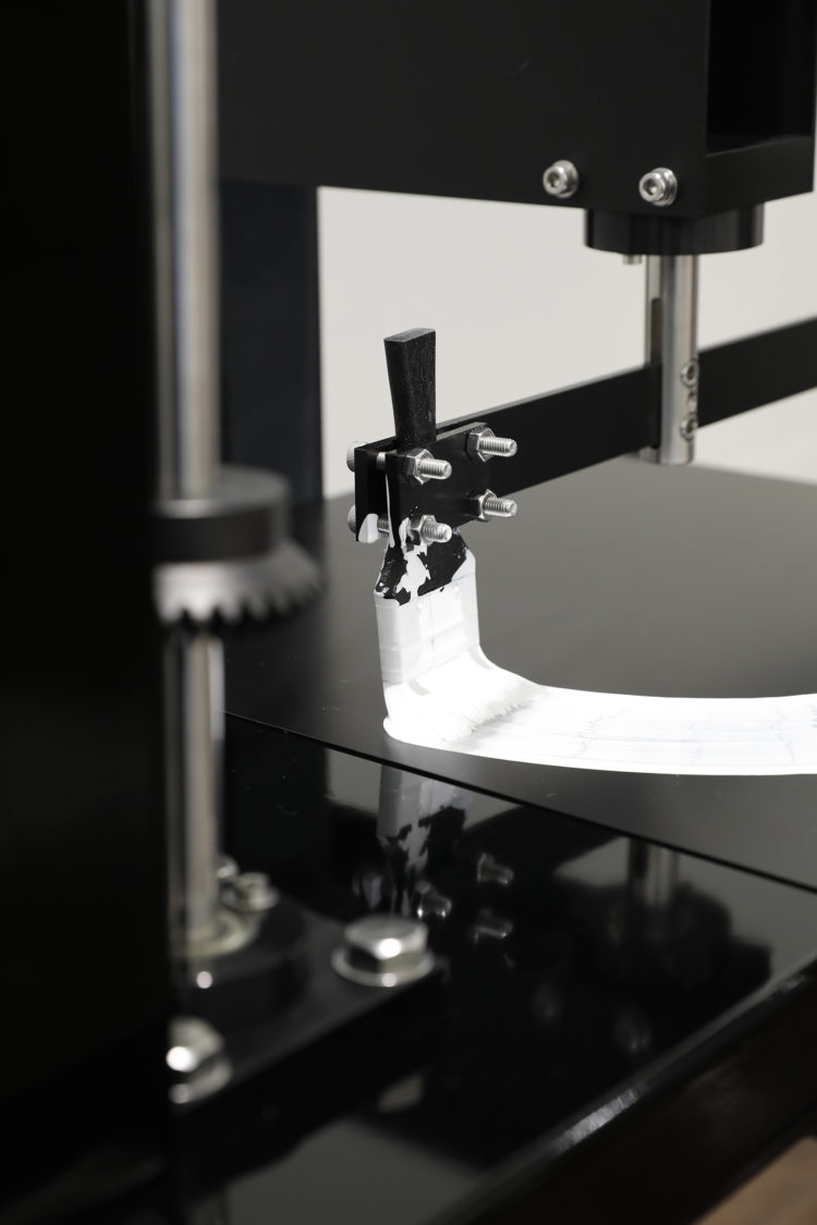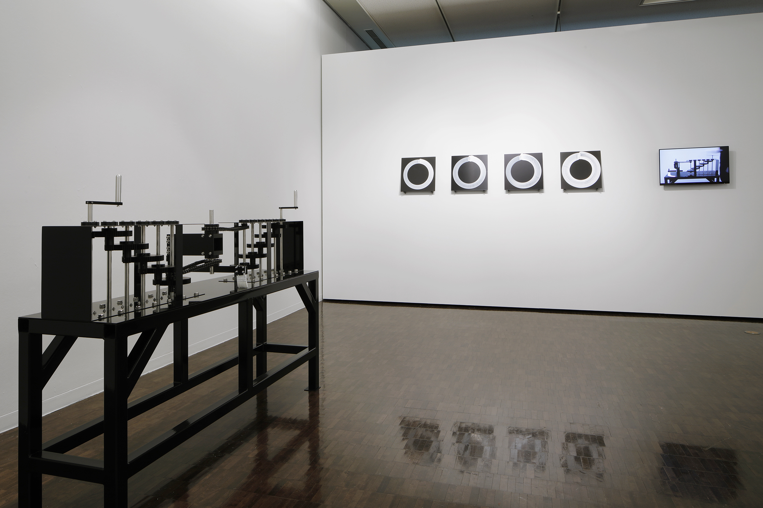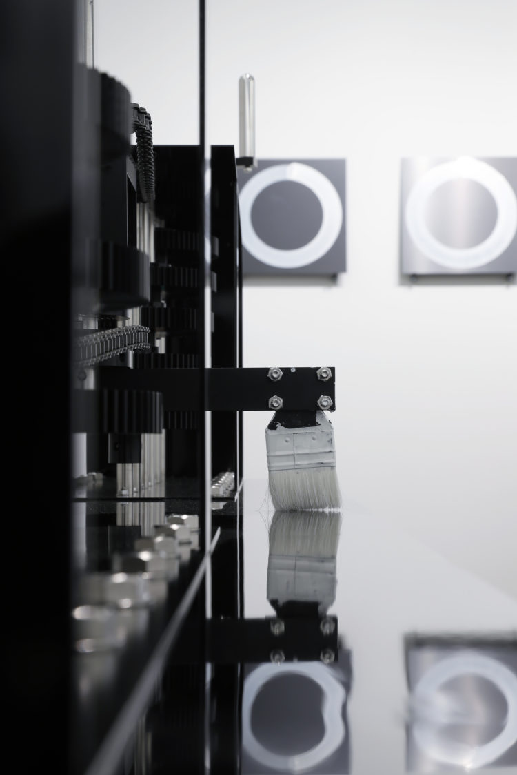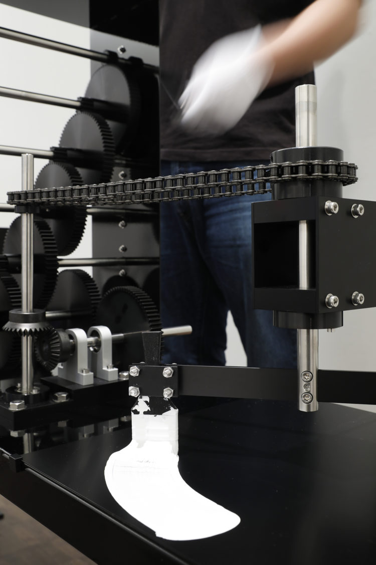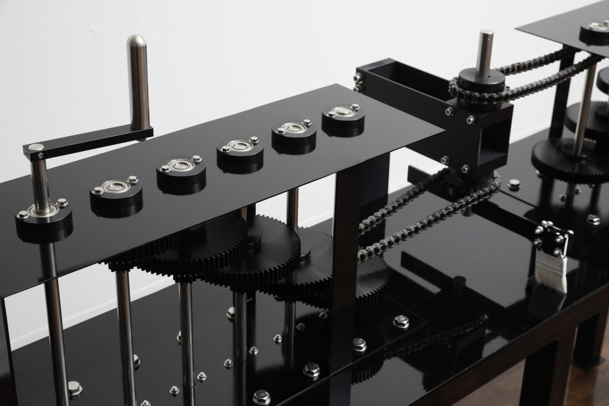 今作ではハンドルを5の5乗の2倍の回数(6250回)回すことで一つの円を描くことができる。生きる為に必要な道具で生きる為に不要なアートを生み出す。連綿と続けられてきたその行為を増幅させるマシンです。僕たちはなぜアートを愛すのか、その理由に少しでも近づくことができればと思います。