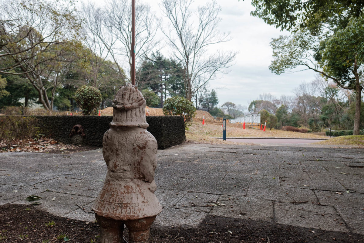 整えられた公園と不気味なはにわ