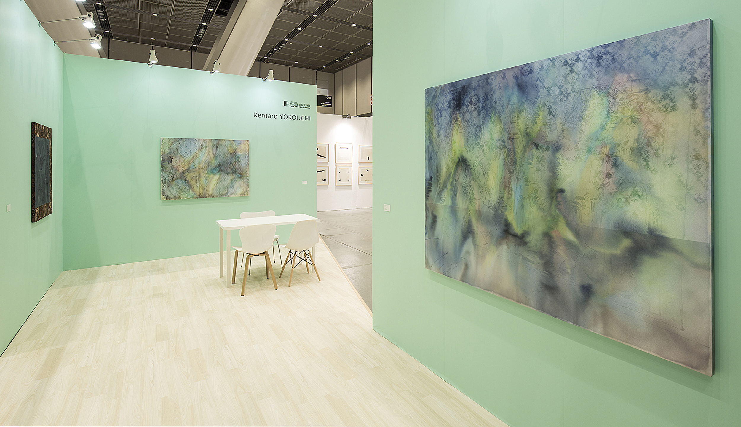 2016年の「Art Fair Tokyo 2016」ポーラ美術振興財団ブースでの展示の時には半分がそのシリーズで半分がサテン布に染料で作ったものを出品しました。サテン布に染料で作った作品はアジア的・西洋的な宗教観のある絵を元にしていて、その図像の上に、ジャワのクバヤというレースのパターンを上にかけて、全ての図像を装飾として扱うというのか、装飾性に対しての取り組みをしました。これらの作品はいずれも実験的なものです。
