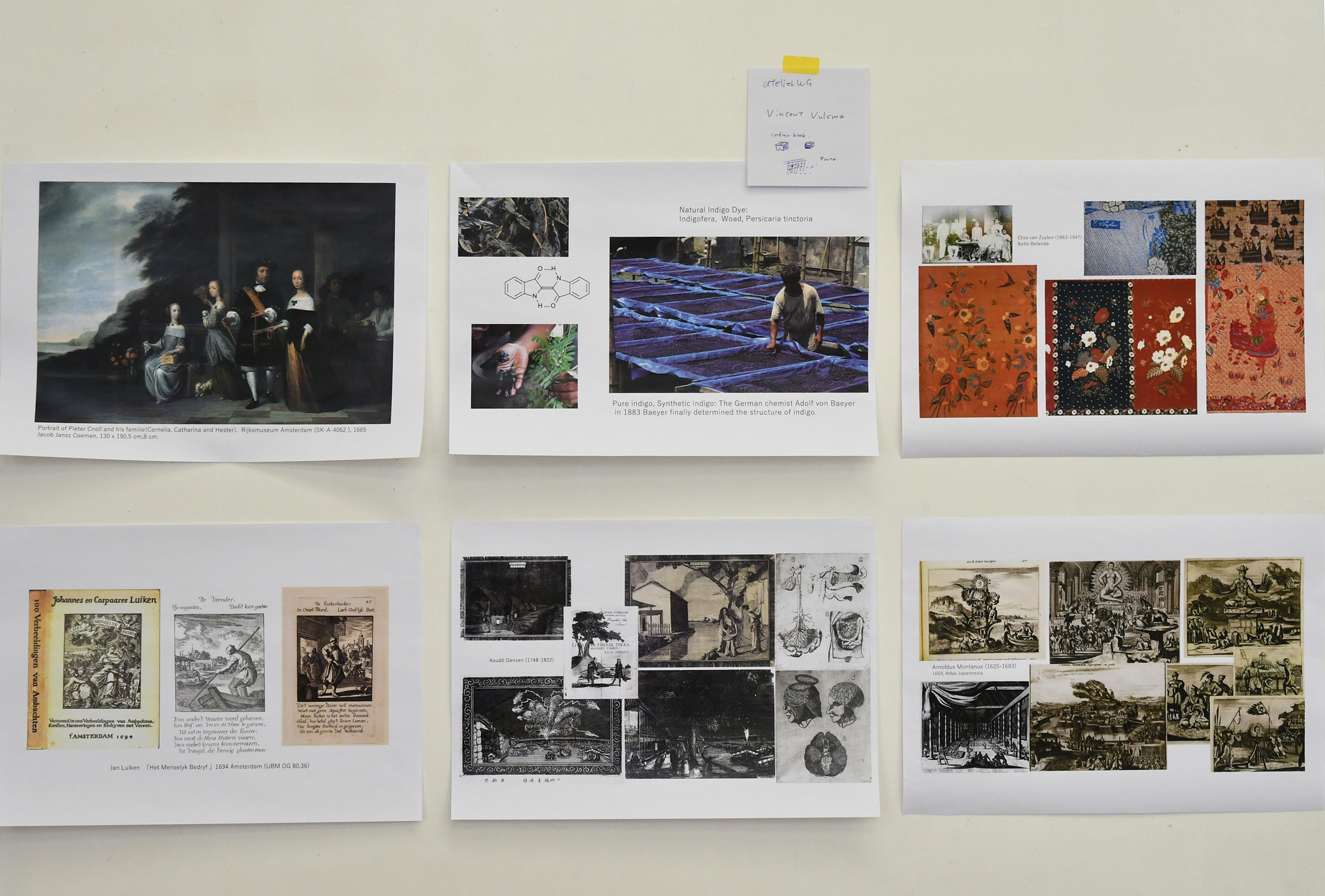 参考にしているヤン・ライケン『西洋職人図集』には歴史的というか、西洋的なコンテクストも含めた、いろんな職業に携わる人のふるまいが描かれています。自宅にいて人生のことや仕事のことを考えていた時に、これらの絵を見ながら、この仕事は何だろう、と考えたりしているのが面白いなと思って、これらの職業の絵を司馬江漢のように、300年経った今のオランダで描いてみよう、みたいな感じですね。自分の絵は本当に断片的で、抽象的になるので、これが何の仕事だ、というのはもちろん認識はできないんですけど。それはあまり自分は気にしてないというか。いろんな視点や感触を画面にのせているので、もともとはこうだったんです、くらいの感じ。振り返ると2002年頃、大学院に入った頃は抽象絵画を描いていたのですが、その時の何かを生かせるかもしれない、とも思っています。
