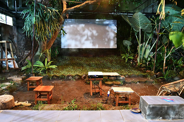 インドネシアに行ってから一年後ぐらいに、ちょうど引越しをするタイミングがあったんですよね。はじめは大学のすぐ裏にある村の中に家を借りて住んでたんです。もう本当に村の中にどっぷり浸かろうと思って。でも、一年近く住んで、もう良いかなと思って。今度は街に行こうと思って。村から2、30分行けばもう街中なので、そんなに離れていたわけでは無いんですけどね。街中の方には、いわゆるコレクティヴの人たちがやっているスペースとか、ギャラリーがあって、その近くで家を探しました。