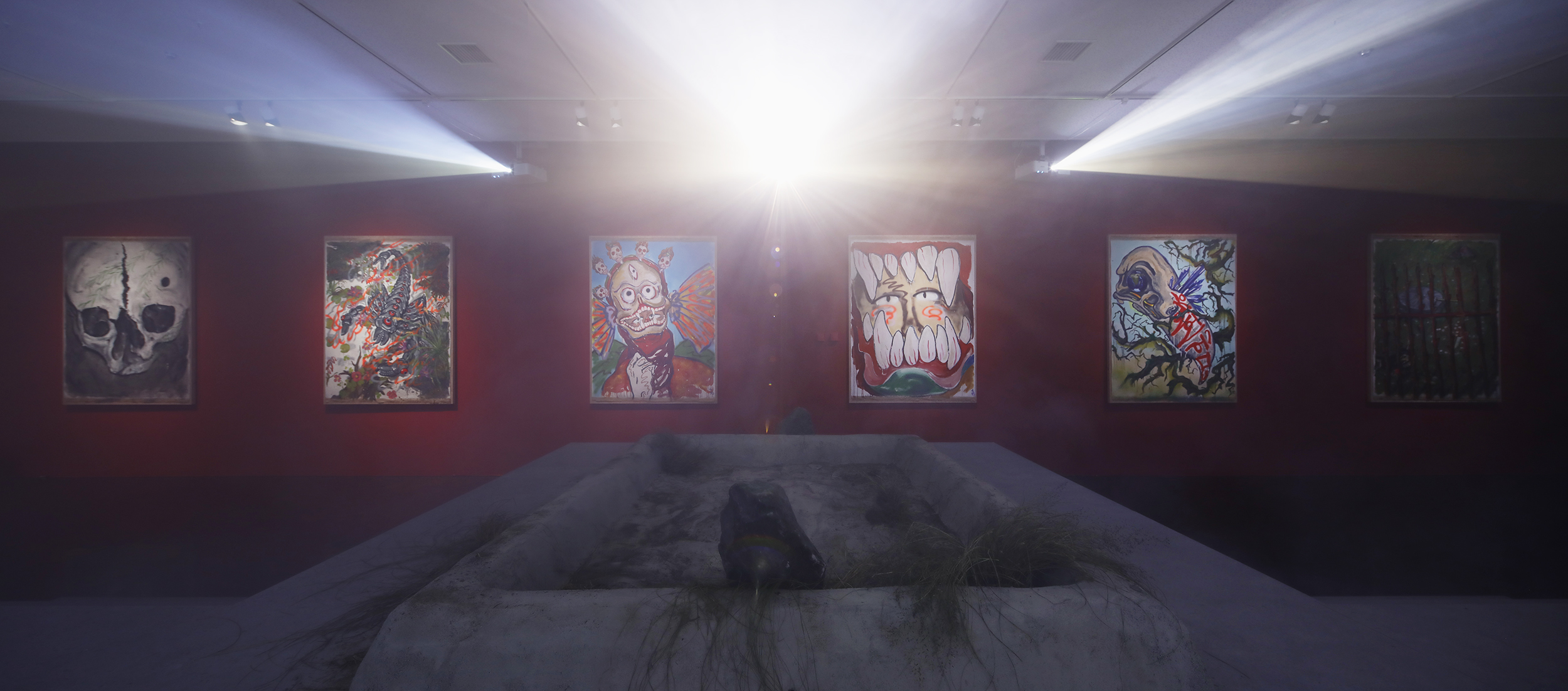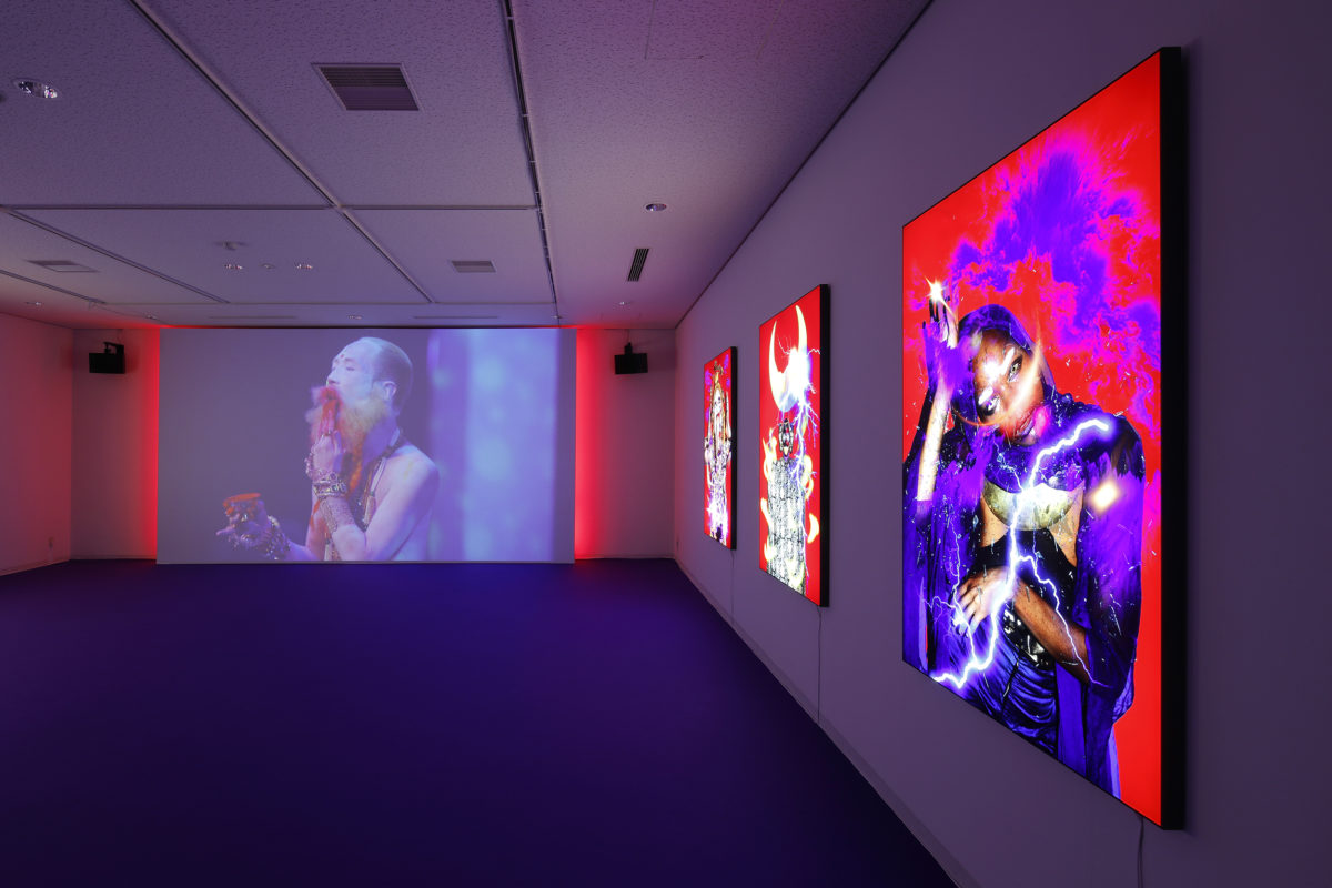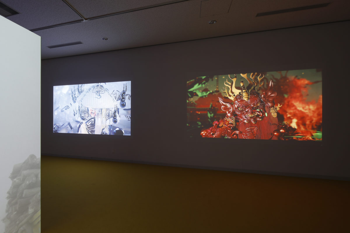 本展のタイトルである「牧羊人」(ムーヤンレン)は、中国語で「羊飼い」を意味し、多くの宗教において「失われた魂の探究」を意味するメタファーであり、転じて精神的変容の出発点を象徴します。チベット系仏教の信者であり、現代のクラブカルチャーにも精通するチェンの手によって、神秘的な宗教儀式とレイブパーティが混淆したような祝祭的空間が出現。