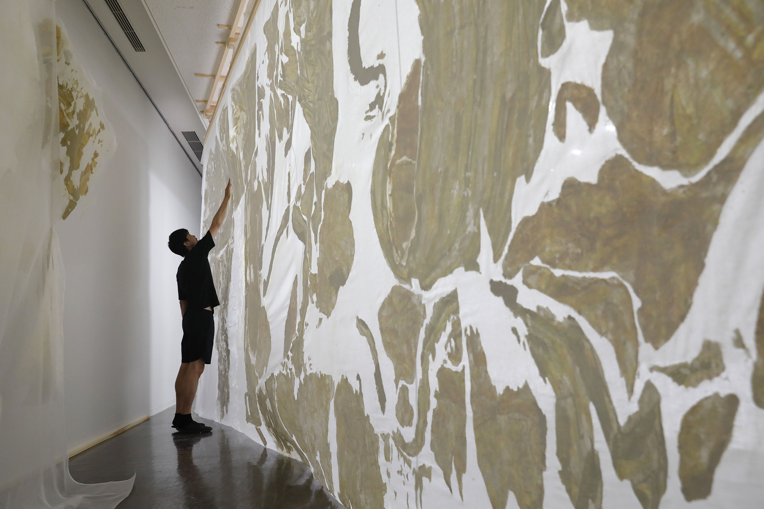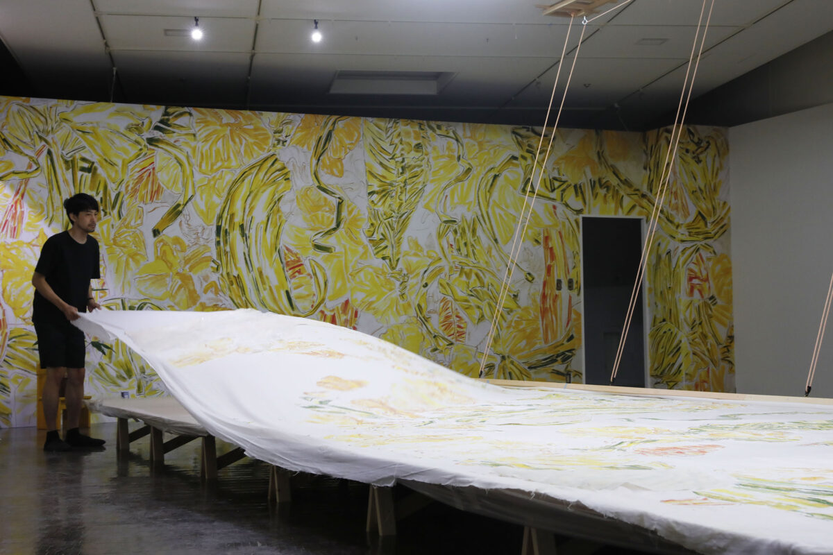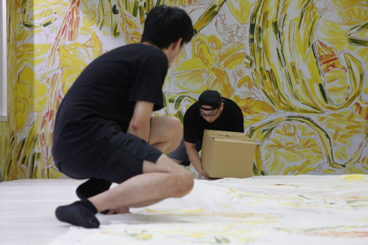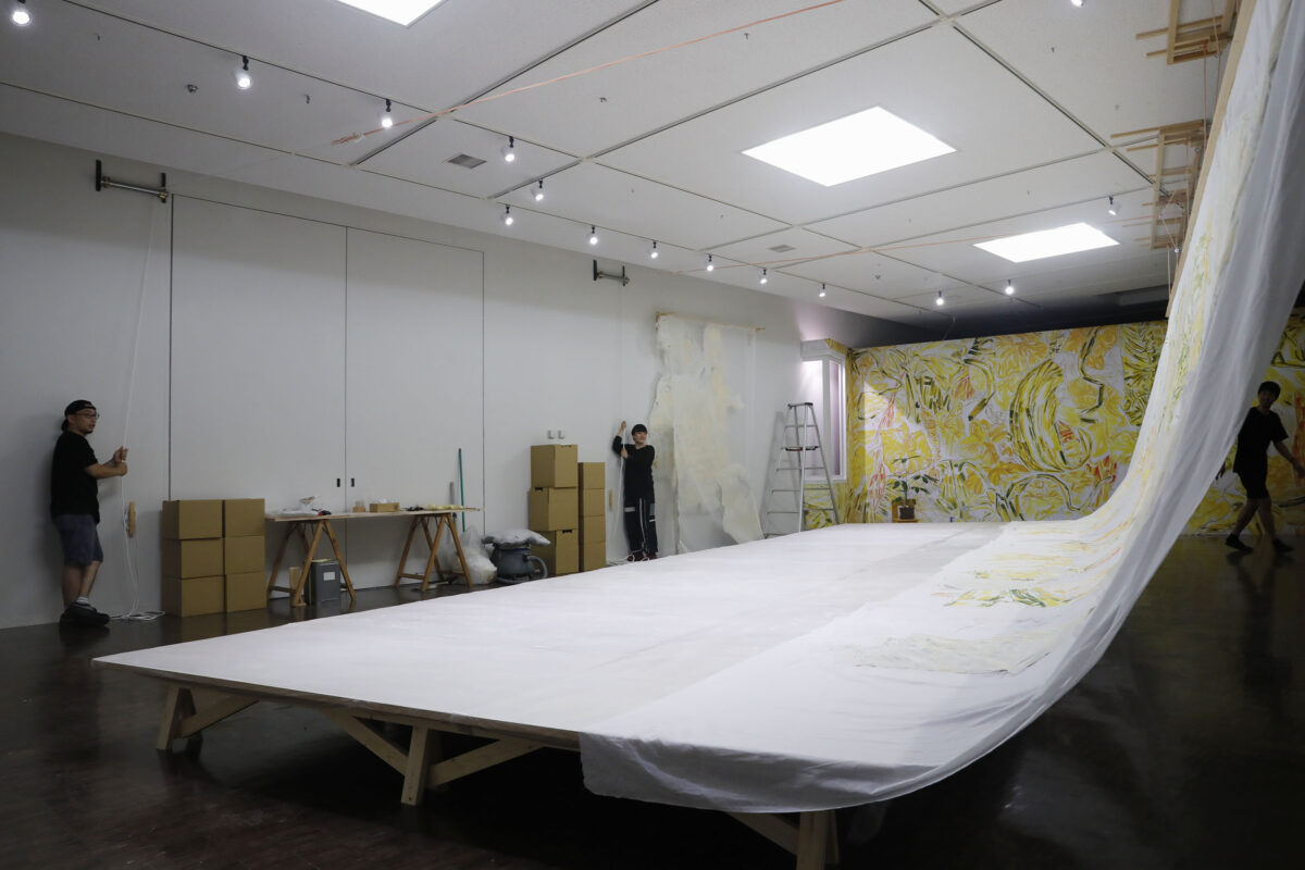 2023年8月19日(土)から9月18日(月・祝)までは、「still moving final: うつしのまなざし 学長室壁画引越しプロジェクト(第1期)」として、展示公開をしながらの作業となりました。