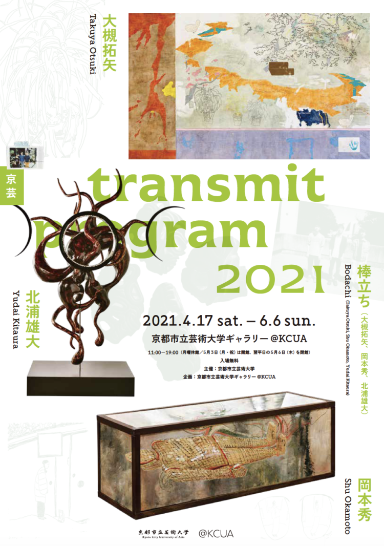 The annual KCUA Transmit Program features emerging artists selected from BFA, MFA, or PhD degree holders who graduated from Kyoto City University of Arts (KCUA) within the past three years. Through this program, @KCUA introduces artists emerging from the Japanese cultural capital and provides support for these artists throughout the school year (April to March). This yearʼs artists are Yudai Kitaura (2020 MFA in Urushi Lacquering), Shu Okamoto (2020 MFA in Nihonga), and Takuya Otsuki (2020 MFA in Nihonga).