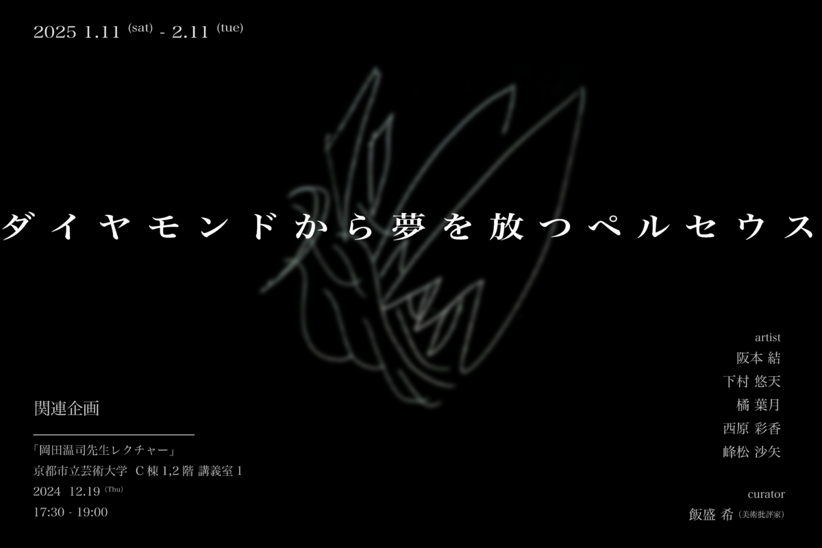 2025年1月11日(土)-2月11日(火・祝)開催の展覧会「ダイヤモンドから夢を放つペルセウス」(2024年度申請展)は、岡田温司著『半透明の美学』から着想を得て企画されたものです。この展覧会に先駆け、岡田温司氏による、絵画の「根源性」と「媒介性」についてのレクチャーを実施いたします。